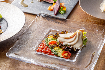 前菜 | 薬膳風鶏ハムとラタトゥイユのティアン サラダ仕立て |