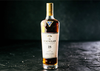 アメリカンオークとヨーロピアンオークのシェリー樽で18年間熟成し、完璧に調和の取れたシングルモルトウイスキーです。