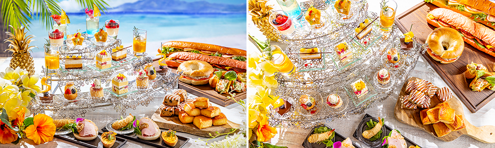 そのほか果肉とふんわりと軽いクリームをスポンジで挟んだショートケーキなど、ハワイを感じるスイーツの数々がエレガントなアフタヌーンティースタンドに並びます。