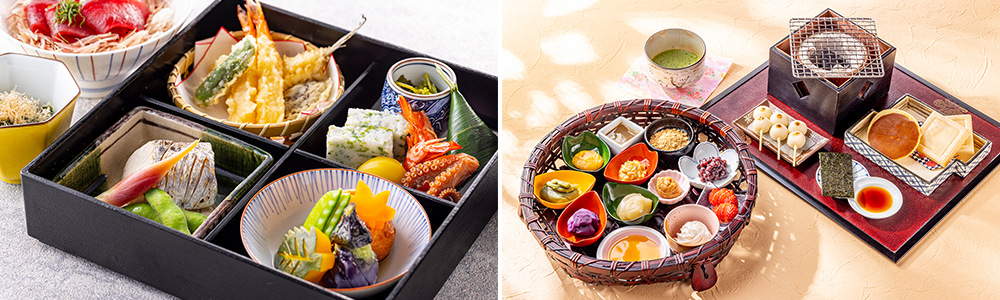 旬の食材を使い華やかに飾った松花堂弁当は浴衣との相性も抜群です。