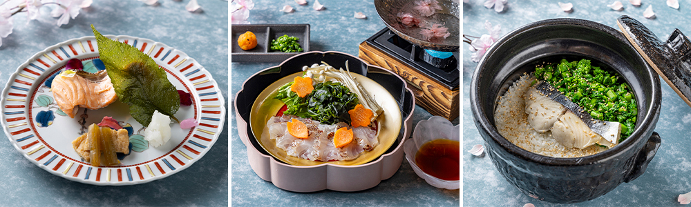 香り、食感、余韻まで春を感じる構成で、前菜から土鍋御飯、デザートまで移ろう季節をお楽しみいただけます。
